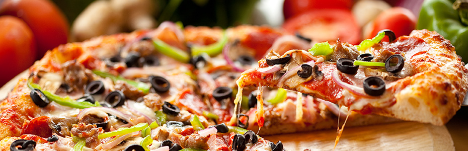 Toppings: Artichoke Hearts, Black olives, Broccoli, Eggplant, Feta cheese, Garlic, Green Pepper, Fresh Mushrooms, Onion, Fresh Spinach, Anchovies, Bacon, Chicken, Salami, Ham, Hamburger, Linguica, Meatball, Pepperoni, Sausage, Tomatoes, Jalapenos, Banana Peppers